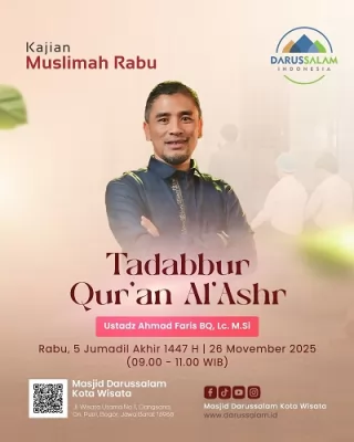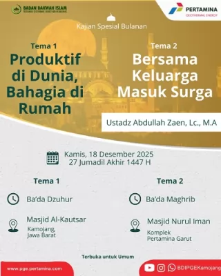diposkan pada : 16-12-2025 15:00:01Mari hadir dan renungkan bersama dalam kajian : 👤 Ustadz Abdullah Zaen, Lc., M.A 🗓 Kamis, 18 Desember 2025 / 27 Jumadil Akhir 1447 H Tema 1 📖 Produktif di Dunia, Bahagia di Rumah 🕰 Ba’da Dzuhur 📍 Masjid Al-Kautsar, ...