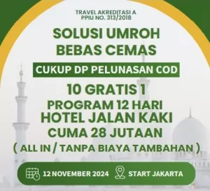 Promo Umroh November: Cukup DP, Pelunasan COD! Gratis 1 untuk 10 Jamaah! ✨ Nikmati Solusi Umroh Bebas Cemas di November 2025 – Hanya dengan DP, Pelunasan COD, Hotel Dekat Masjid, Harga Mulai 28 Jutaan All-in Tanpa ...
