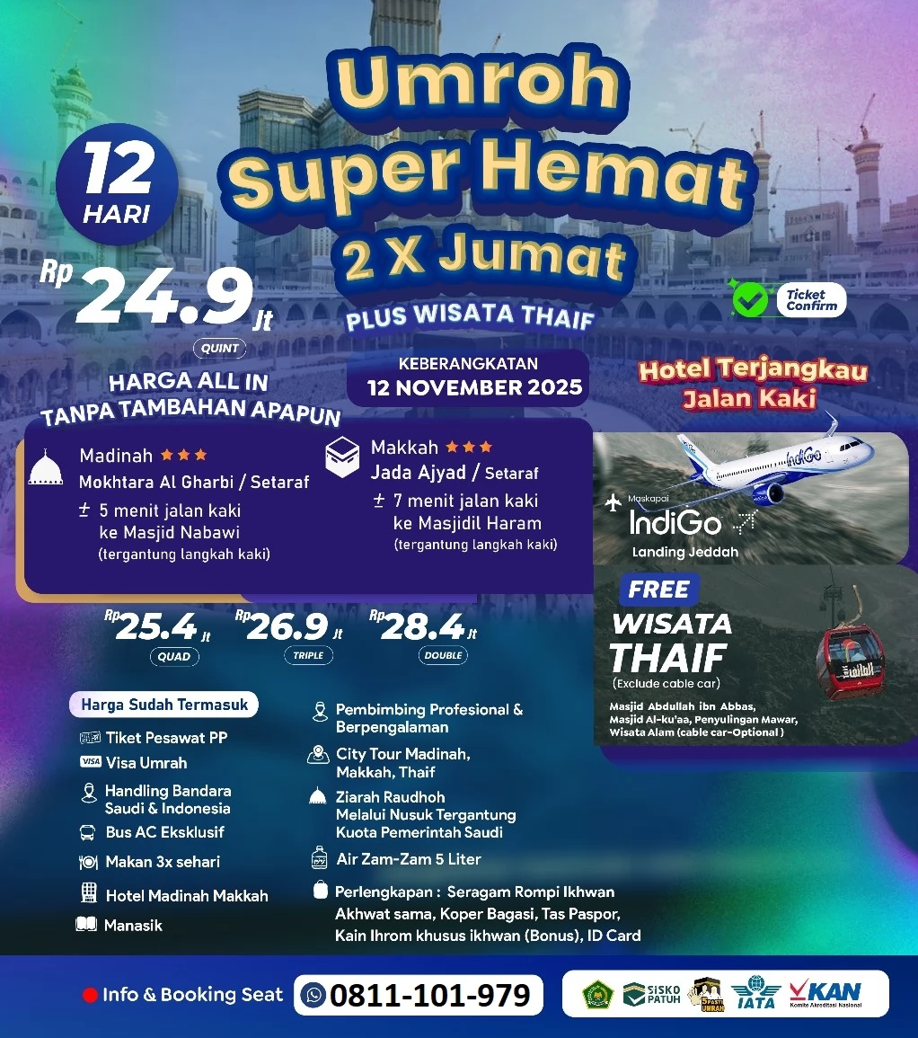 📌 Umroh 12 Hari | 2x Jumat | Plus Thaif | Berangkat 12 November 2025