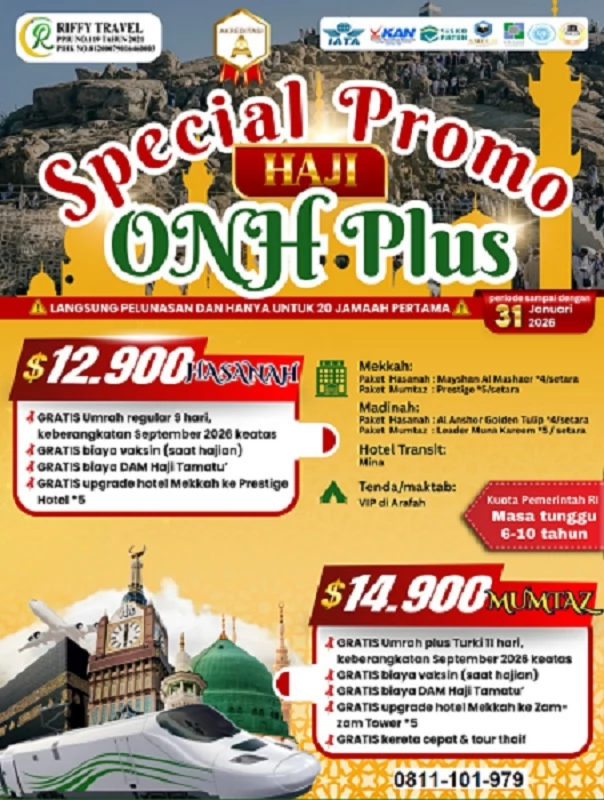 Special Promo Haji ONH Plus adalah peluang langka untuk mempercepat langkah menuju rukun Islam kelima—dengan cara yang lebih nyaman dan terarah.