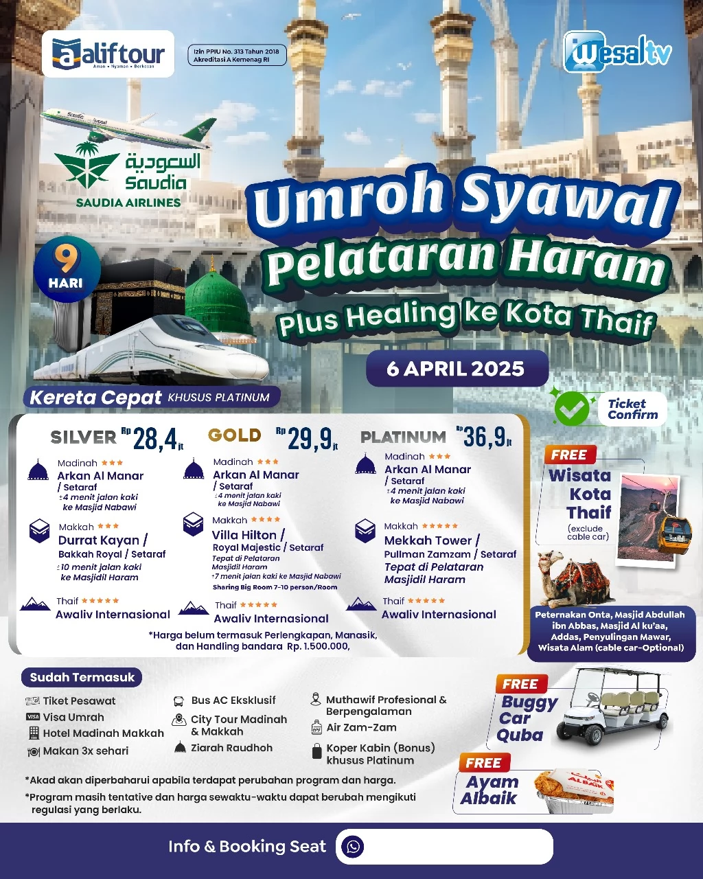 Jangan sampai kehabisan! Segera daftar untuk Promo Umroh Syawal Pelataran Haram Plus Healing Kota Thoif. Nikmati perjalanan spiritual dan relaksasi terbaik tahun ini.
